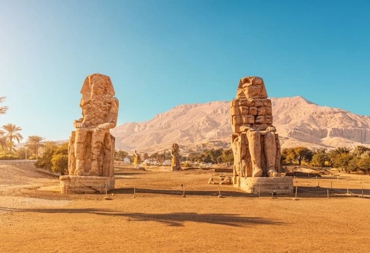 Next let's visit the magnificent Temple of Madinat Habu, dedicated to Ramses III, followed by the two enormous and impressive Colossi of Memnon, the two colossal statues of Amenhotep III.