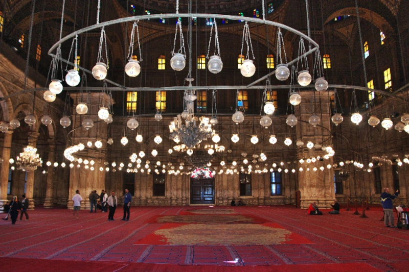 The mosque is renowned for its use of alabaster in its construction, earning it the nickname "Alabaster Mosque." It boasts a central dome 52 meters high, surrounded by four semi-domes, and features twin minarets reaching 84 meters - the tallest in Egypt. The interior is adorned with intricate decorations and houses Muhammad Ali's tomb.
