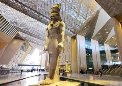 After breakfast, the first stop will be the New Grand Egyptian Museum, also known as the Giza Museum, which is an archaeological museum in Giza, Egypt, about 2 kilometers (1.2 miles) from the Giza pyramid complex. The GEM Complex is now offering limited access to test site readiness and the visitor experience ahead of the official opening. Admission is currently limited to the Main Galleries, Grand Hall, Grand Staircase, commercial area, and exterior gardens. After that, you’ll go for lunch at an authentic Egyptian restaurant. Then head over to the Egyptian Museum, in the heart of historic Downtown Cairo, overlooking the infamous Tahrir Square. After relishing the magnificent ancient Egyptian artifacts and treasures, travel via air-conditioned modern vehicle back to Alexandria Port. Back to your cruise ship for the final departure.