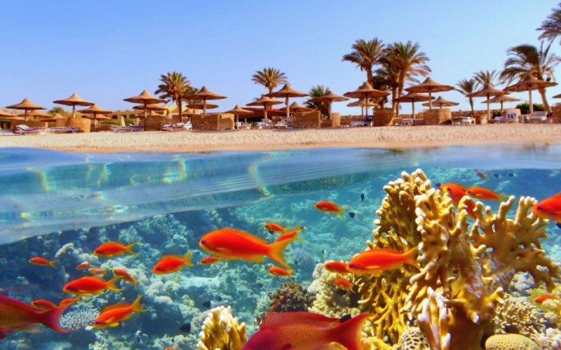 The 8th day of the 12 days Cairo and Red Sea Holidays Package will start with a great morning and breakfast onboard the ship followed by exploring the Valley of the Kings, resting place of kings and princes. So far, 63 tombs were discovered there, including the famous King Tutankhamun's tomb. From there, head straight to the Temple of Queen Hatshepsut, whose temple is not only spectacular as unique in style. Next comes the Colossi of Memnon, the twin statues of King Amenhotep III, and after that you can enjoy free time in Luxor before we hit the road to Hurghada (around 4h drive). Then, welcome to Hurghada! You will be taken to your hotel where you can rest.